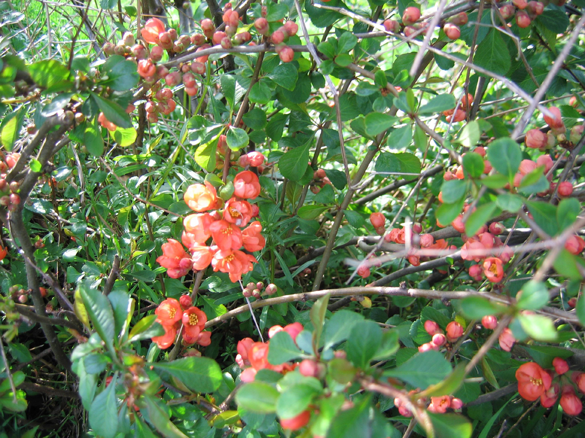 Die Quitte ist eine sehr robuste Pflanze, sie blüht auch schon mal zur Fruchtzeit.
