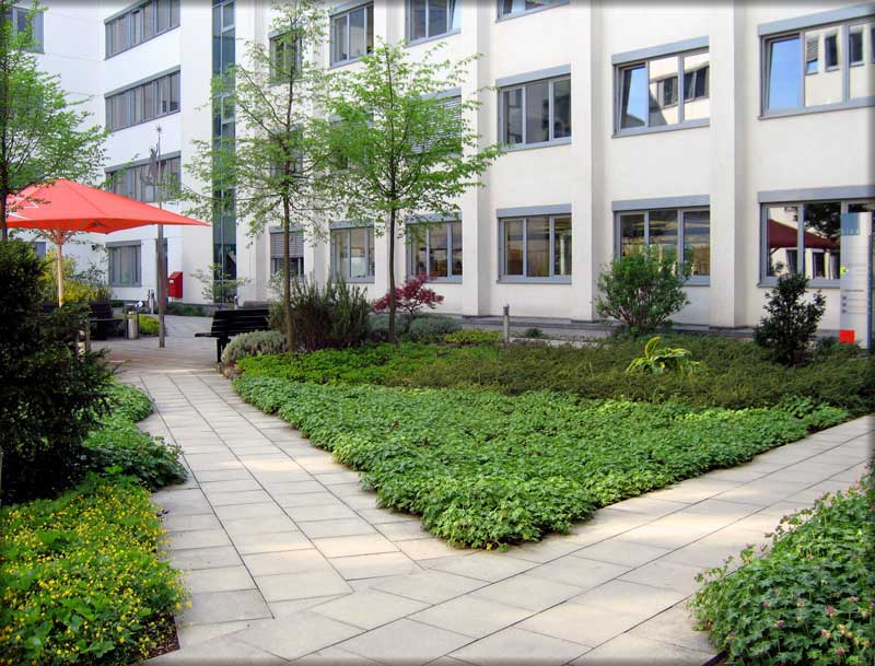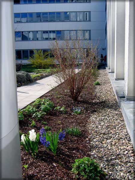 Die Westseite Die obere Aufnahme zeigt die West-Seite, Ende Juni 2009. Die untere Aufnahme zeigt die Süd-West-Ecke, Anfang April 2009
