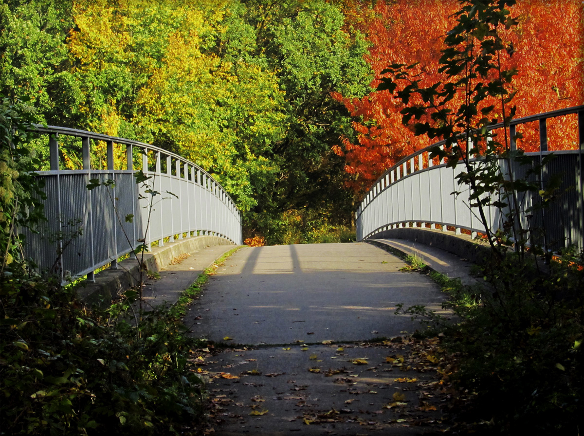 Da kommt ein Mensch mit einem 'Schild am Arm' die Idylle entlang.