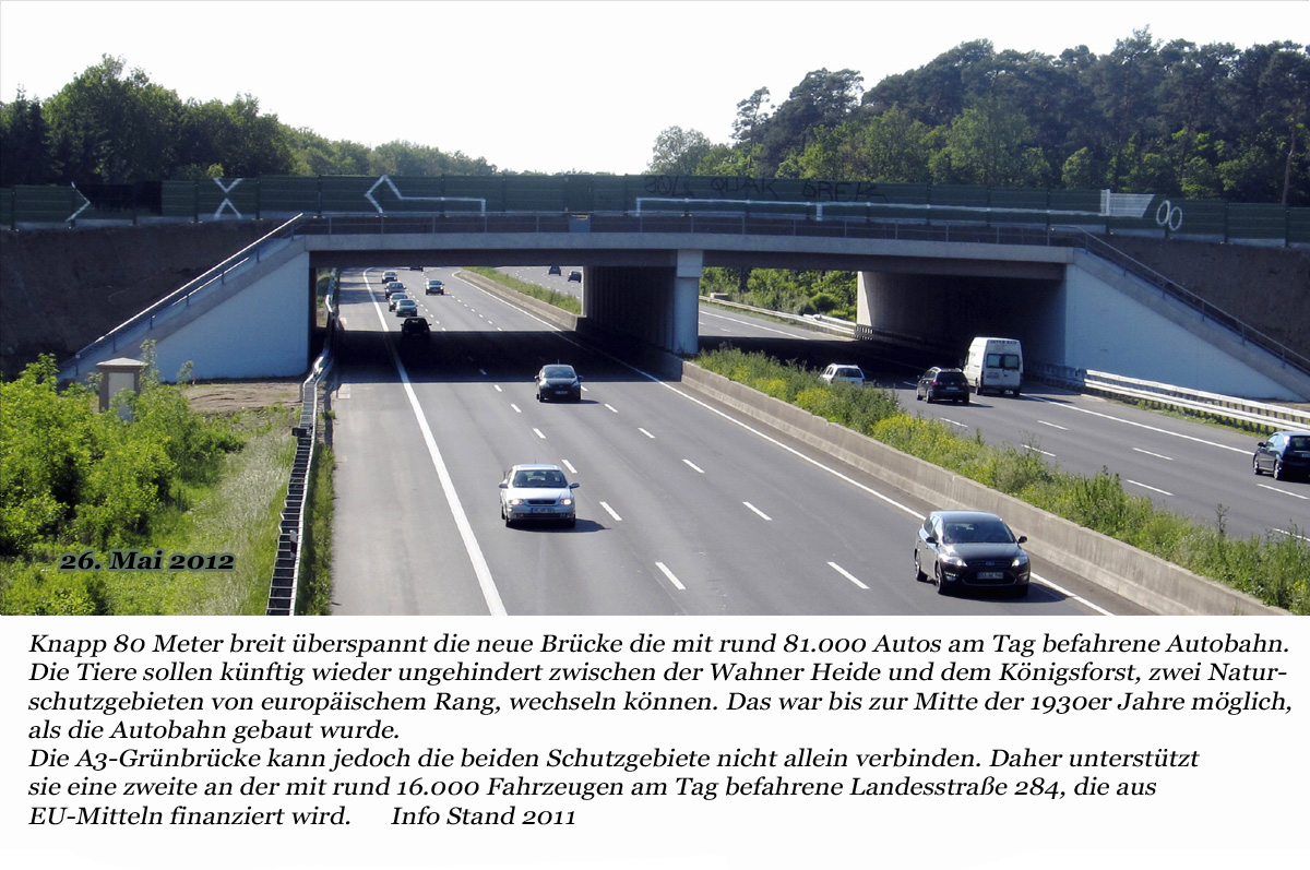 Die neue Wildbrücke wirkt auch aus der Nähe noch relativ ansehnlich. 26. Mai 2012