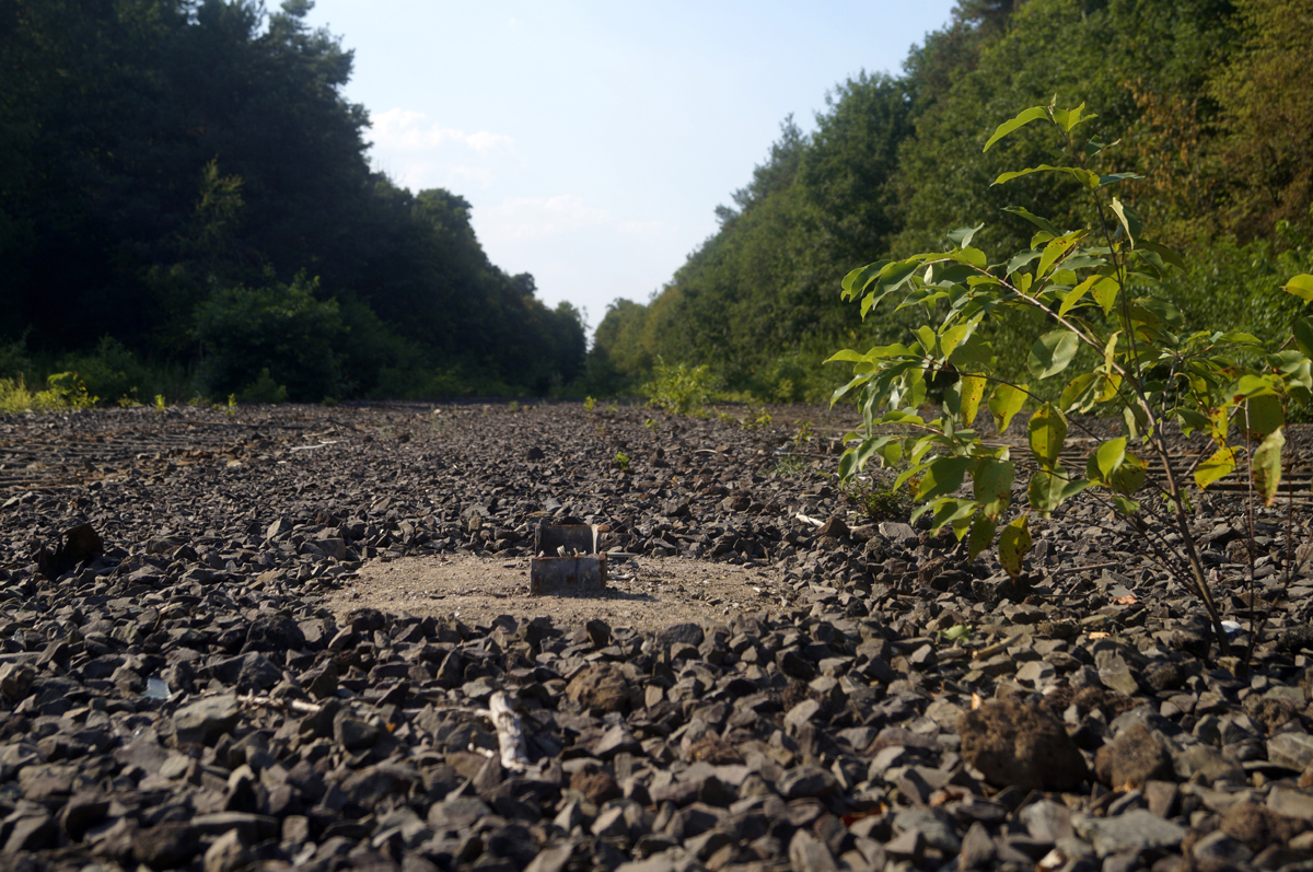 Sockel mit dem Rest der Hochleiterlampe 9. Die befand sich Mitte des viergleisigen Bereiches.