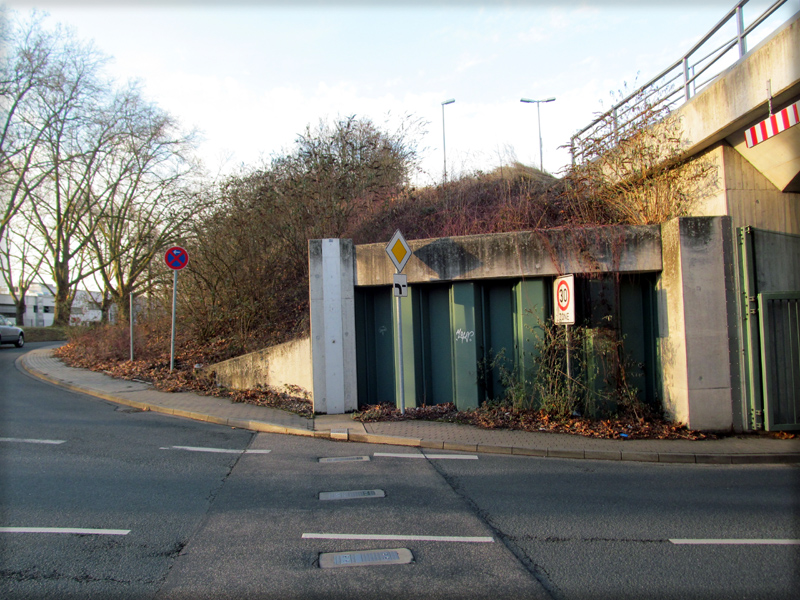 Der Erdwall für die Eisenbahntrasse der HGK Köln AG schützt hier den Außenbereich des Hafens.