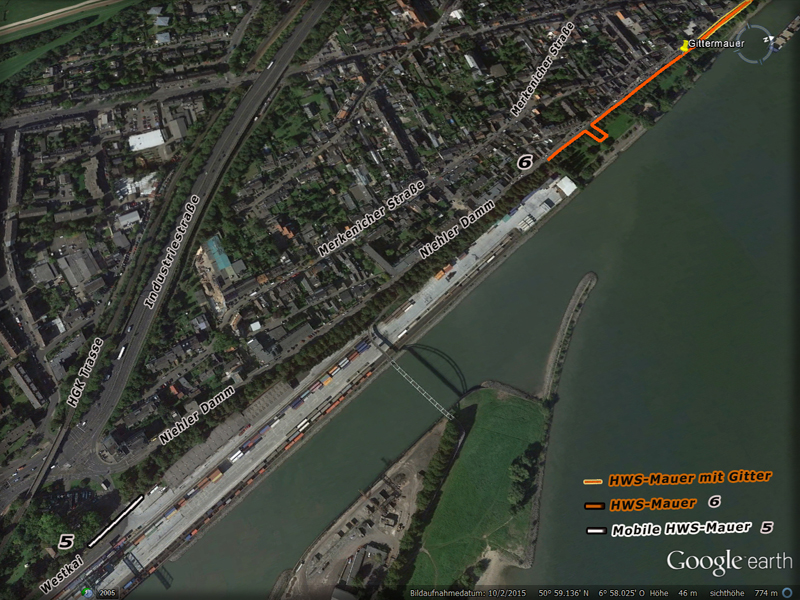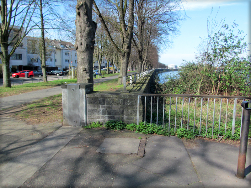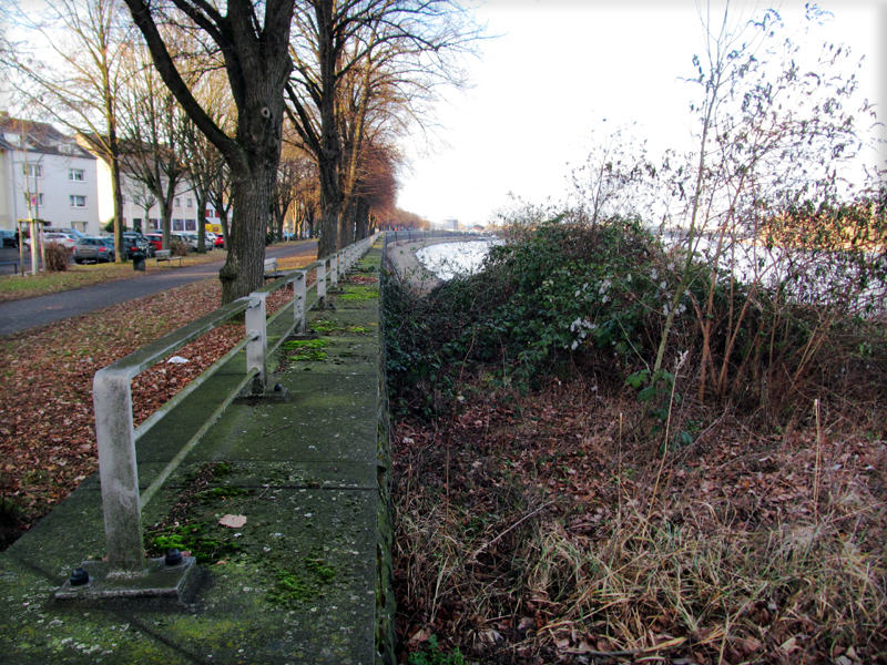 Zu _6_ Niehler Damm Die HWS-Mauer längs des -Niehler Damm- ist nur 75cm hoch, ohne Gitter.