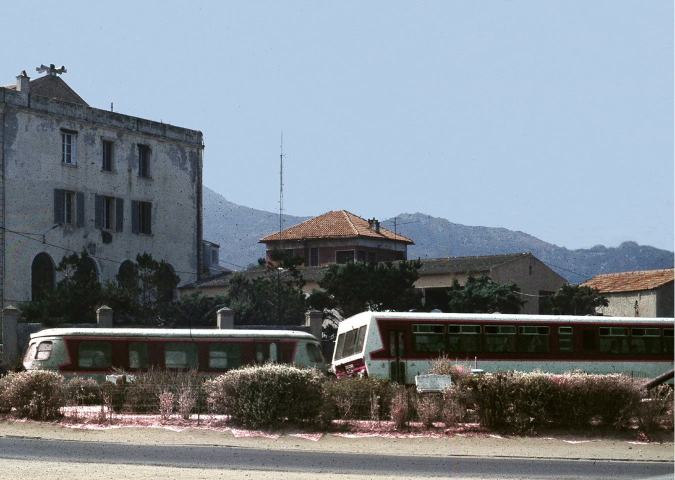 Hier auf dem Bild, von 1985, verkehrt schon ein 'moderner Zug' zwischen Calvi und Ponte Leccia.