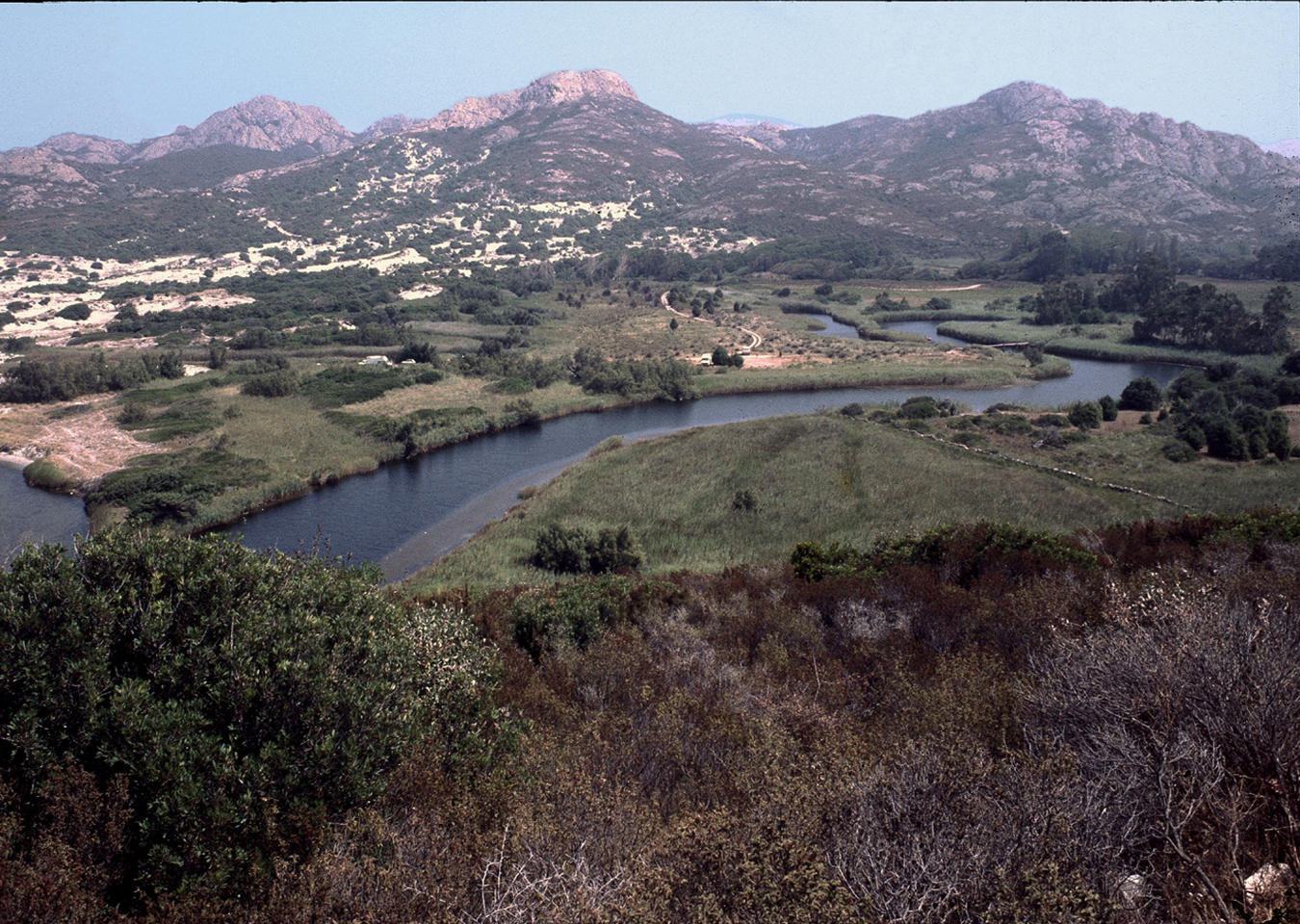 Der Ostriconi, in der Bildmitte der schroffe Fels, ist der Punta Liatoggiu mit 222m Höhe.