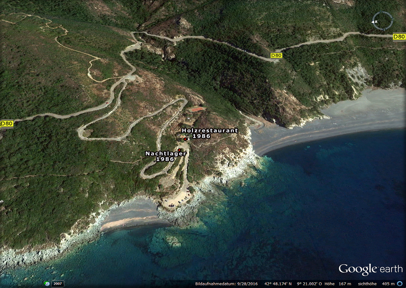 Hier am kleinen Strand konnte man in den 1980er Jahren noch beruhigt Campen und mit kleineren Wohnmobilen nächtigen.