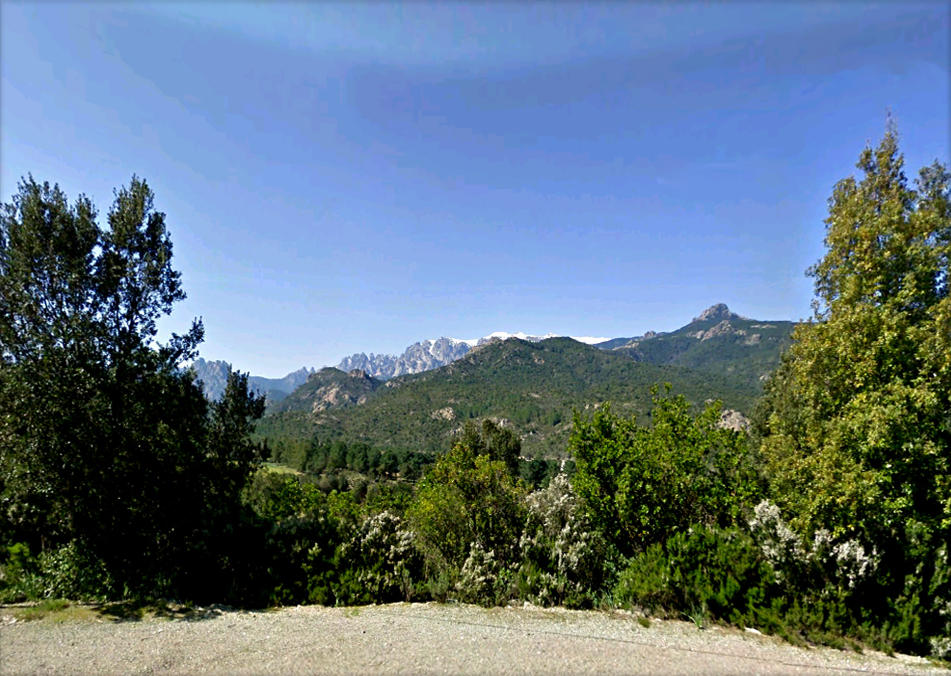 Links noch zu erkennen (im 'Busch') das Bavella-Massiv. Sicht von der D268.