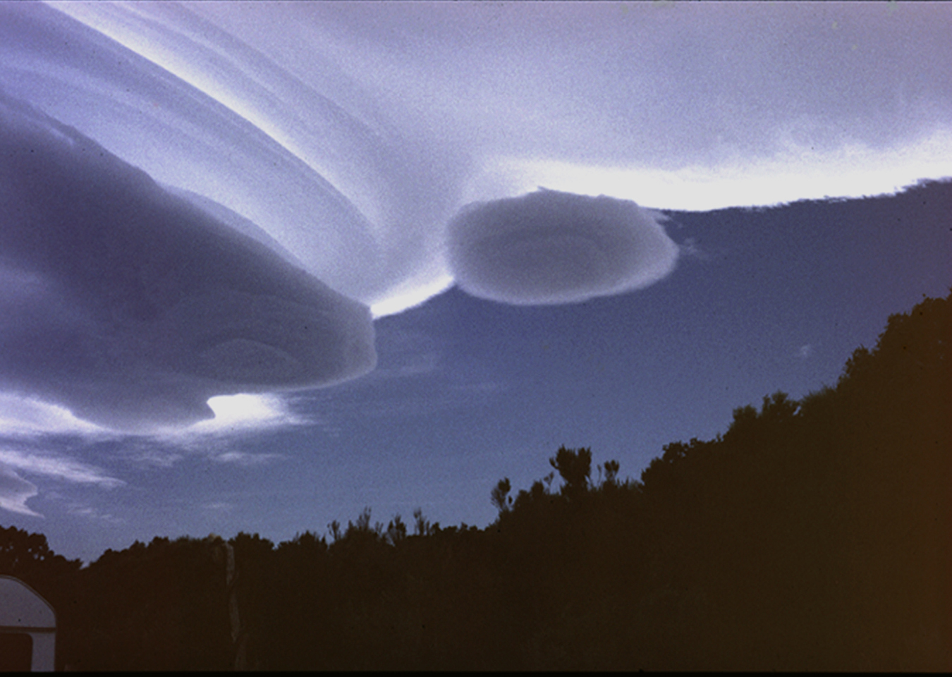 Fallwinde, die vom Bergmassiv-Appiano zur Küste rasen, erzeugen diese kunstvollen Wolkengebilde.