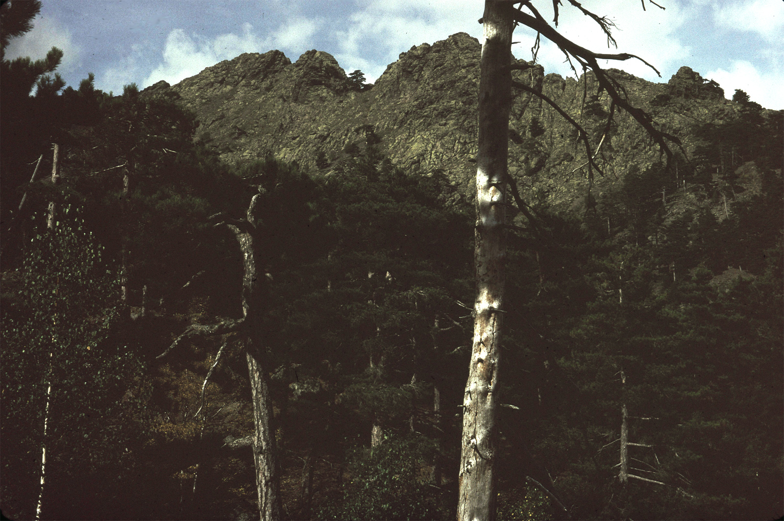 Noch herrscht Cinto-Wetter. Die Laricio-Kiefer ist sehr genügsam, aber gegen Sturm und Blitzschlag kann so manch eine