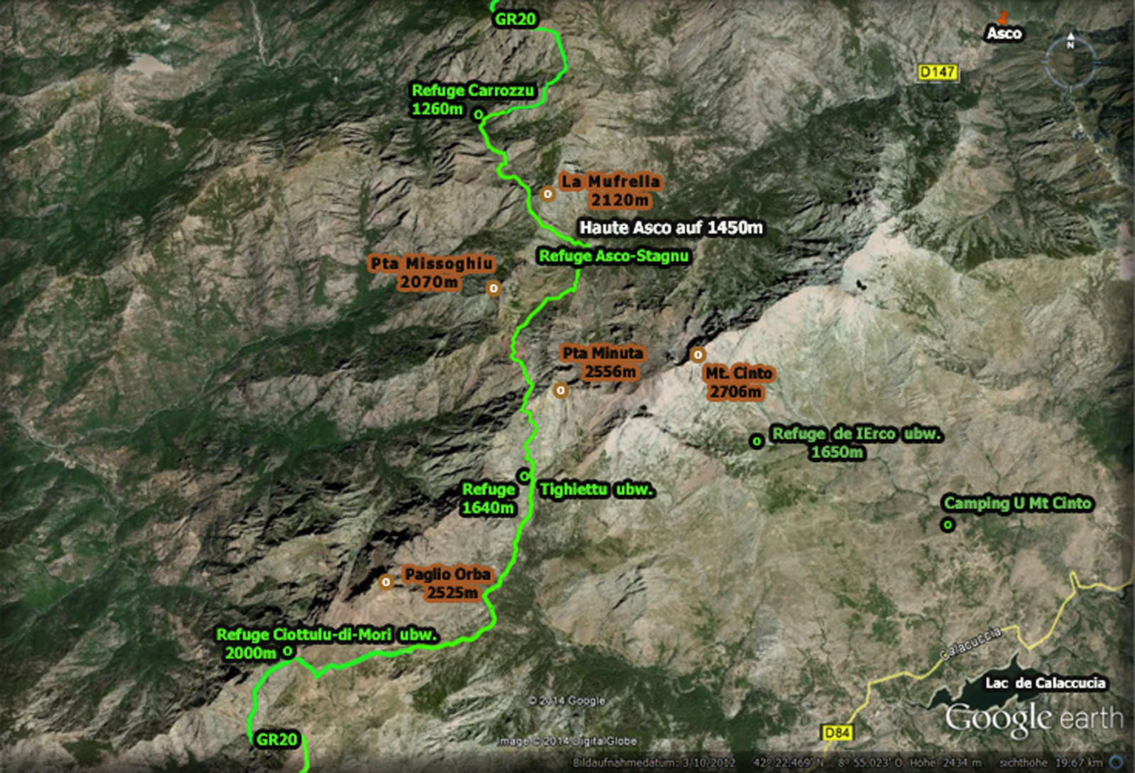 Teilansicht des GR20, diese Refuges können in Tagestouren von Haut-Asco angegangen werden.