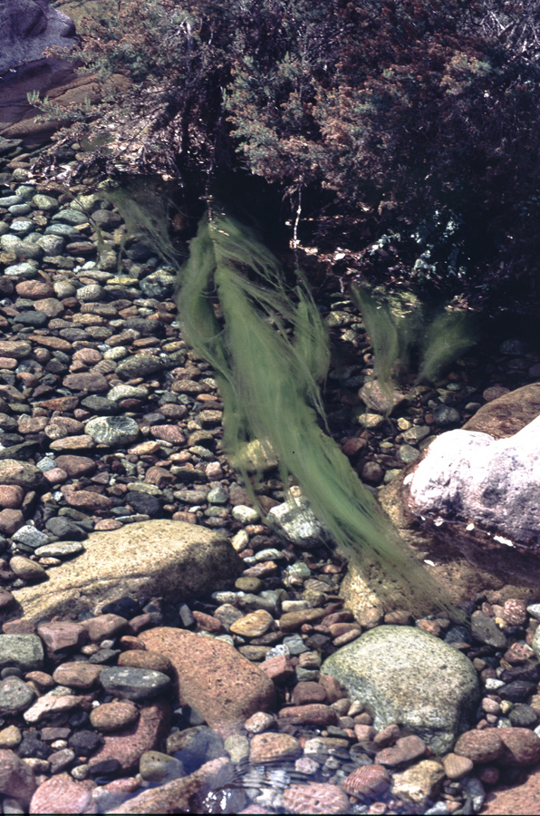Keine Erreger, ein feiner Strömungsanzeiger (Fadenalge) im sehr klarem Bachwasser.
