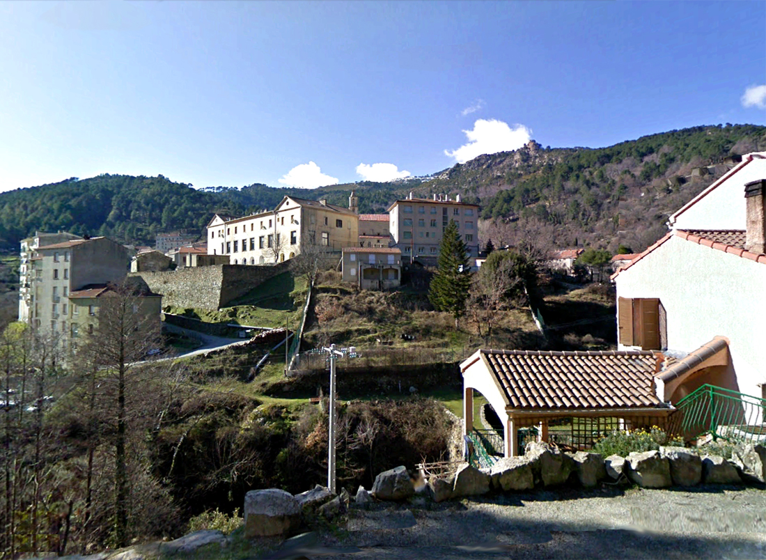 Das lange Gebäude in der Bildmitte ist die Marie, die Bürgermeisterei von Ghisoni.