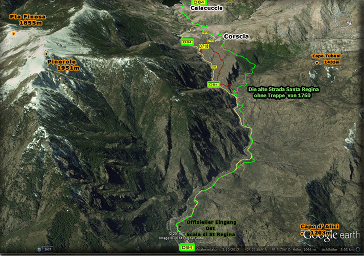 Die alte Strade Santa Regina (grün) ist der Hirtenweg und nicht der Touristenpfad (rot)